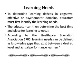Identifying Learning Needs | PDF | Learning | Learning Styles