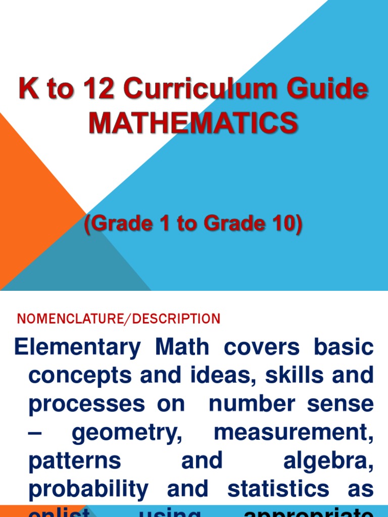 K to 12 Mathematics Curriculum Guide for Grades 1 to 10 | PDF