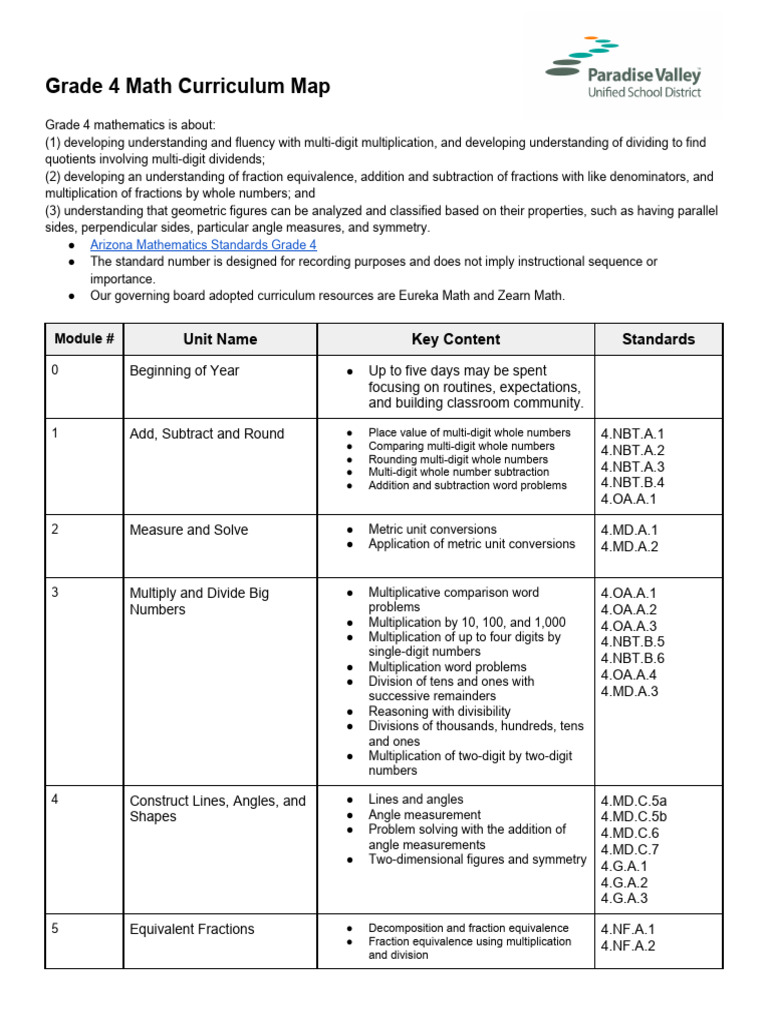 Grade 4 Math Curriculum Overview | PDF | Multiplication | Decimal