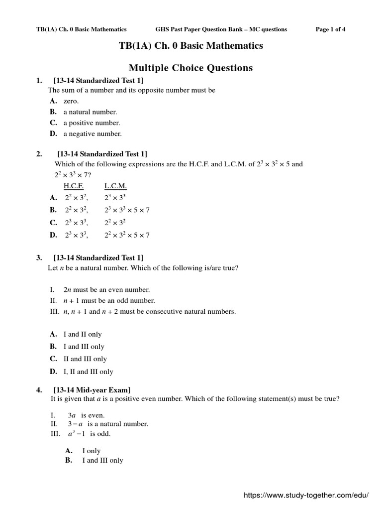13 18 1A Ch.0 Basic Mathematics MC | PDF | Numbers | Prime Number
