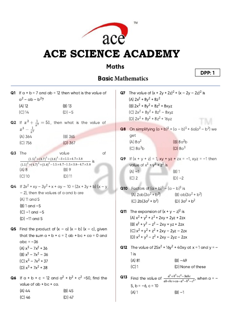 Basic Mathematics - DPP 01 | PDF