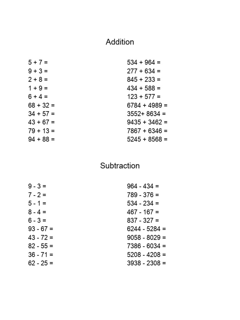 Printable Basic Math Problems - Dream Worksheets