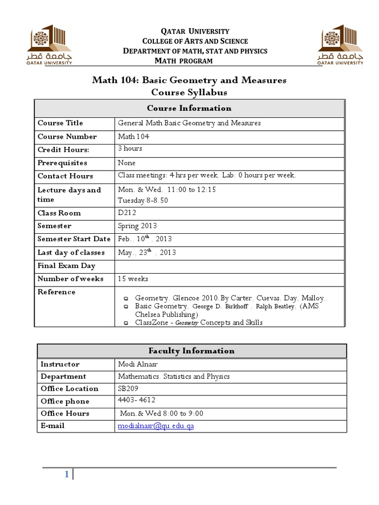 Math 104: Basic Geometry and Measures Course Syllabus | PDF | Circle ...