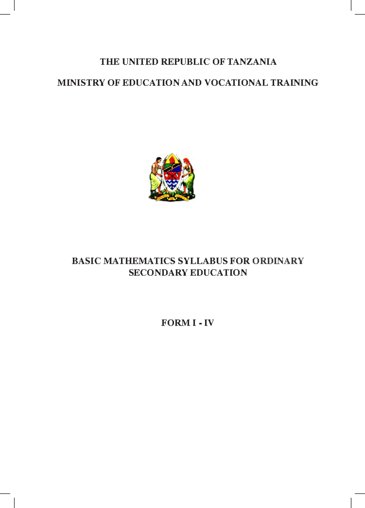 BASIC MATHEMATICS SYLLABUS FOR ORDINARY SECONDARY EDUCATION (2024 ...