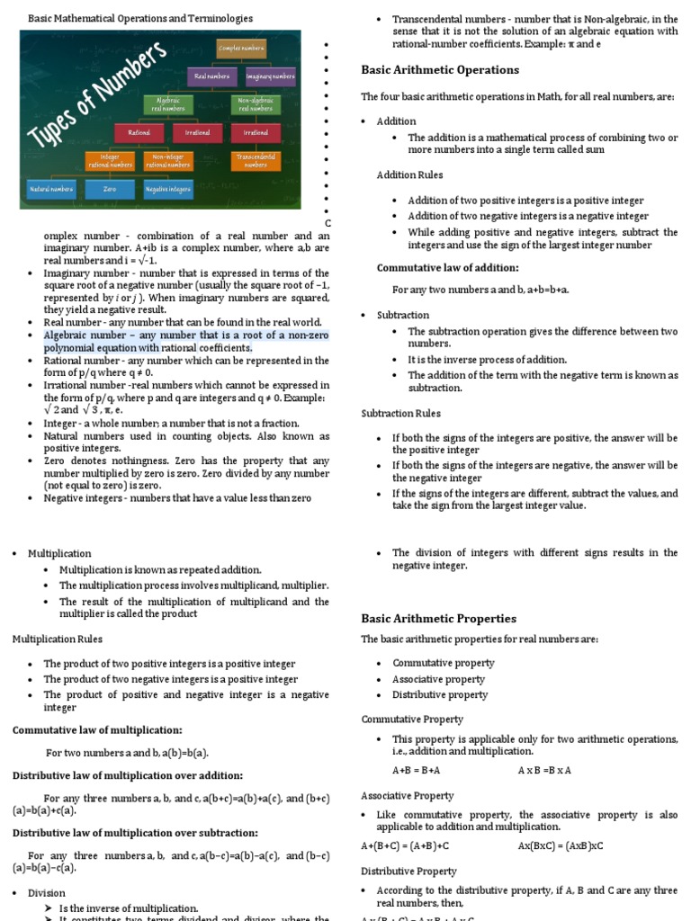 Basic Mathematical Operations and Terminologies | PDF | Numbers ...