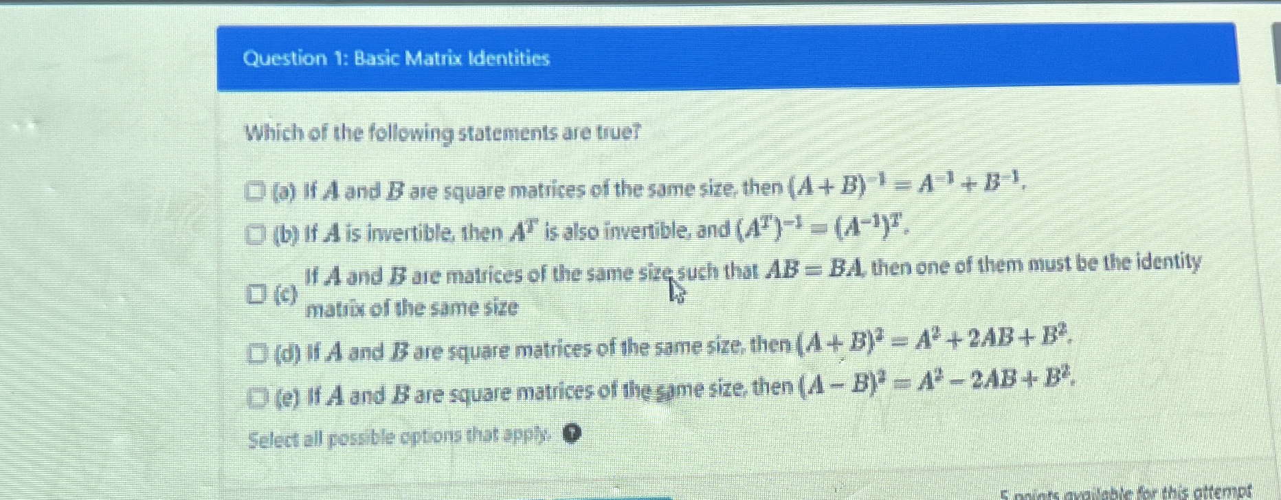 Solved Question 1: Basic Matrix IdentitiesWhich of the | Chegg.com
