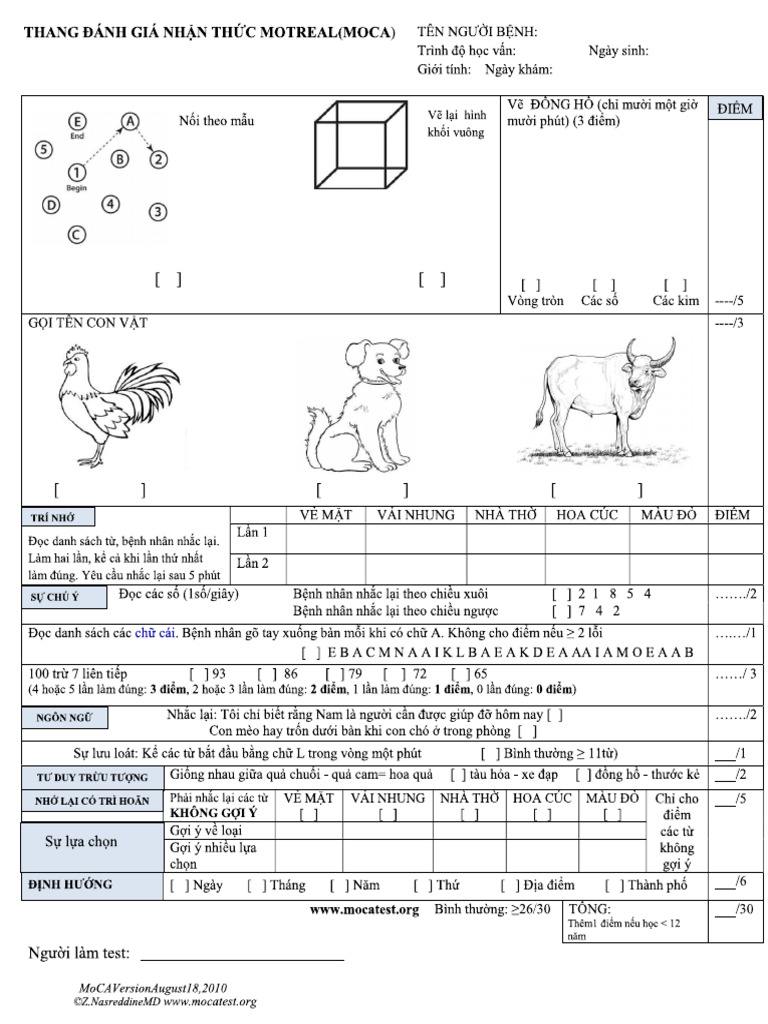 Printable Moca Test - Printable Free Templates