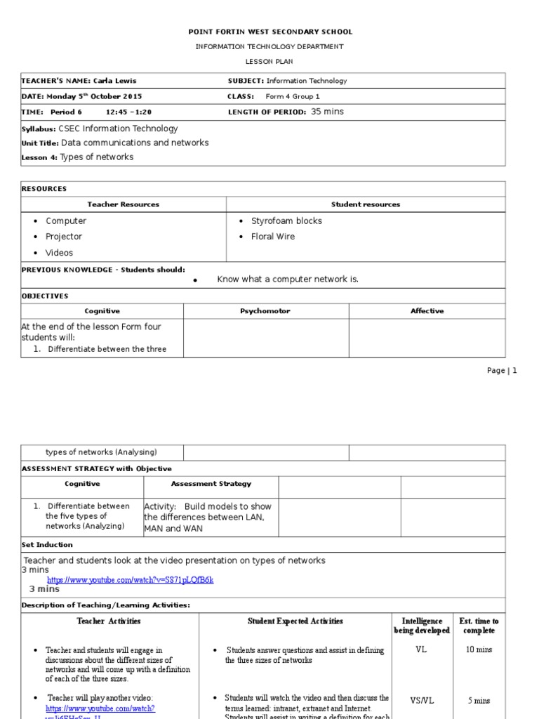 Lesson Plan | PDF | Computer Network | Lesson Plan