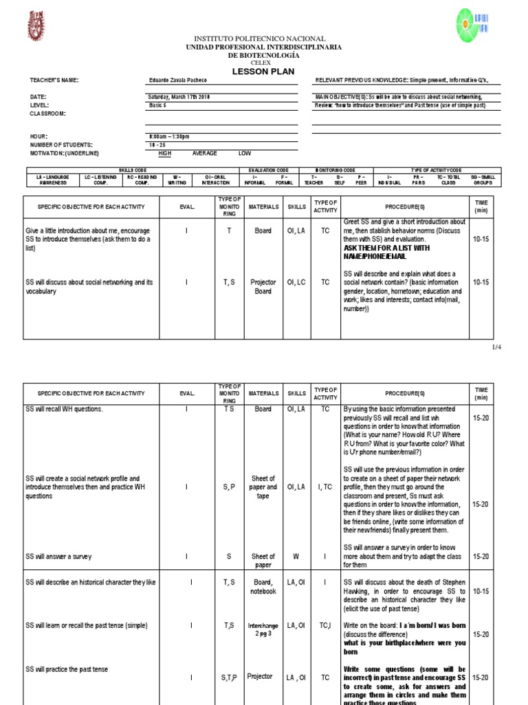 Lesson Plan for Social Networking Class | PDF | Lesson Plan | Teachers