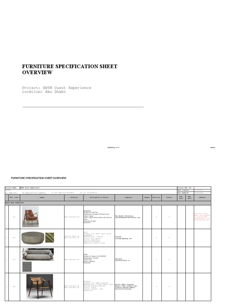 03 - Furniture Specification Sheet Overview | PDF | Upholstery | Design