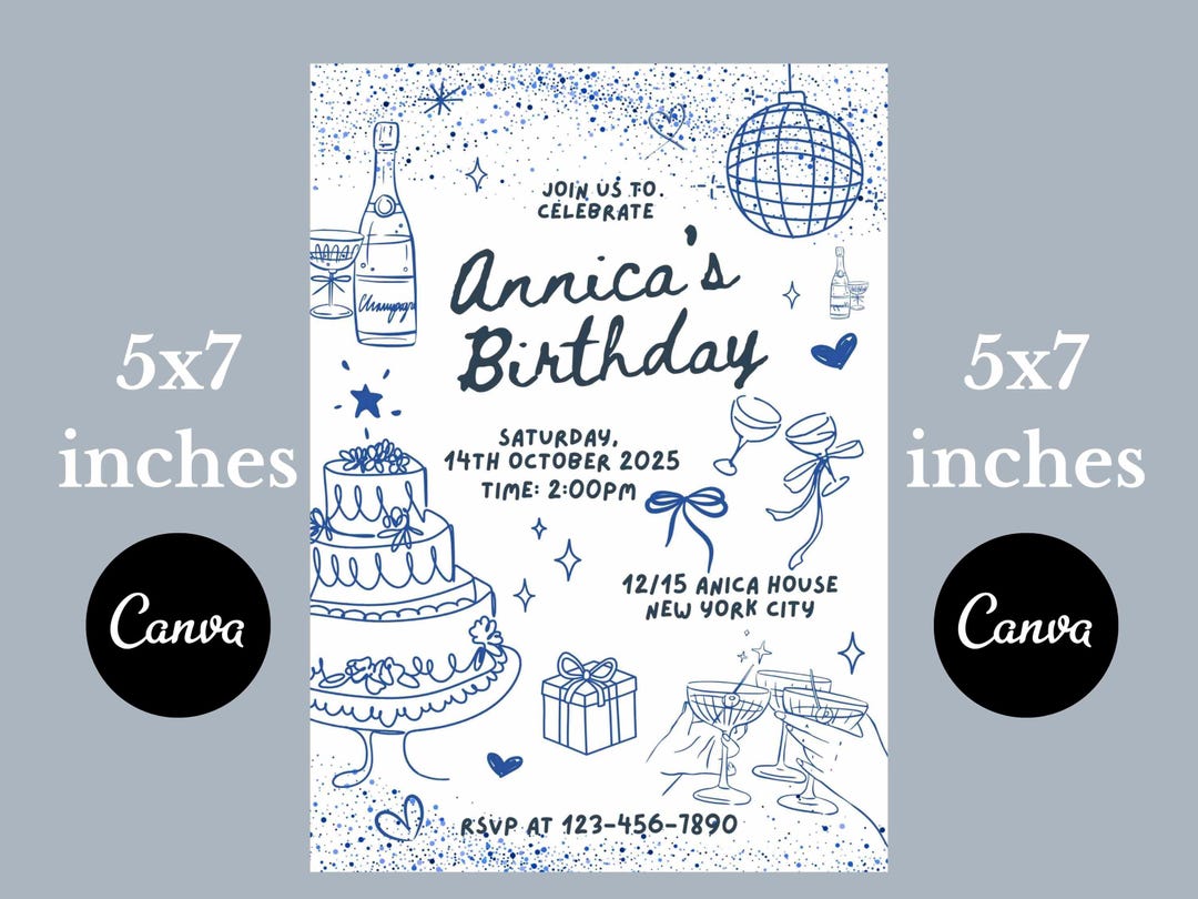 Simple Birthday Party Invitation, Editable Canva Template, Instant ...