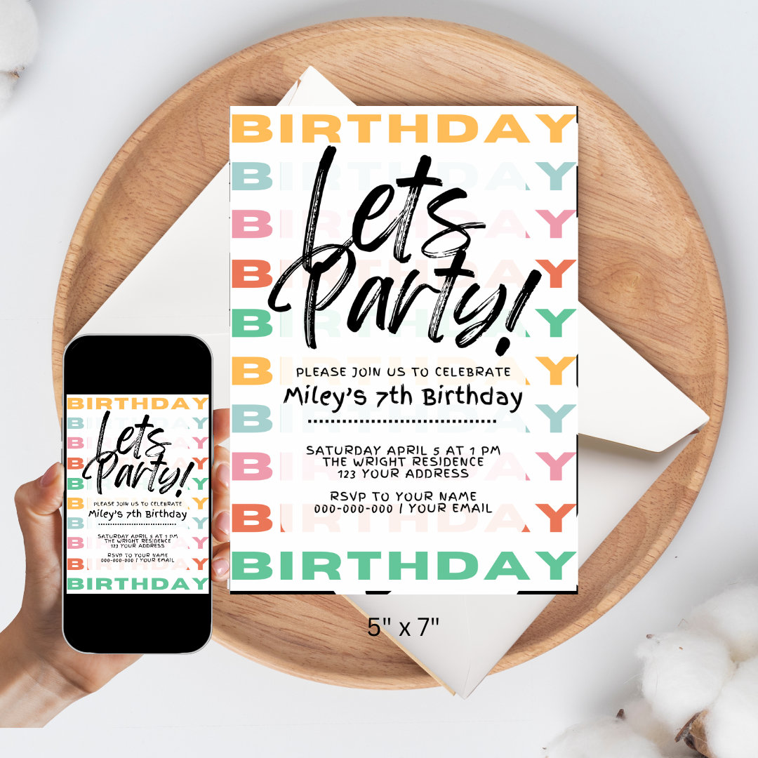 Basic Party Digital Invitation |canva Template | Electronic Birthday ...