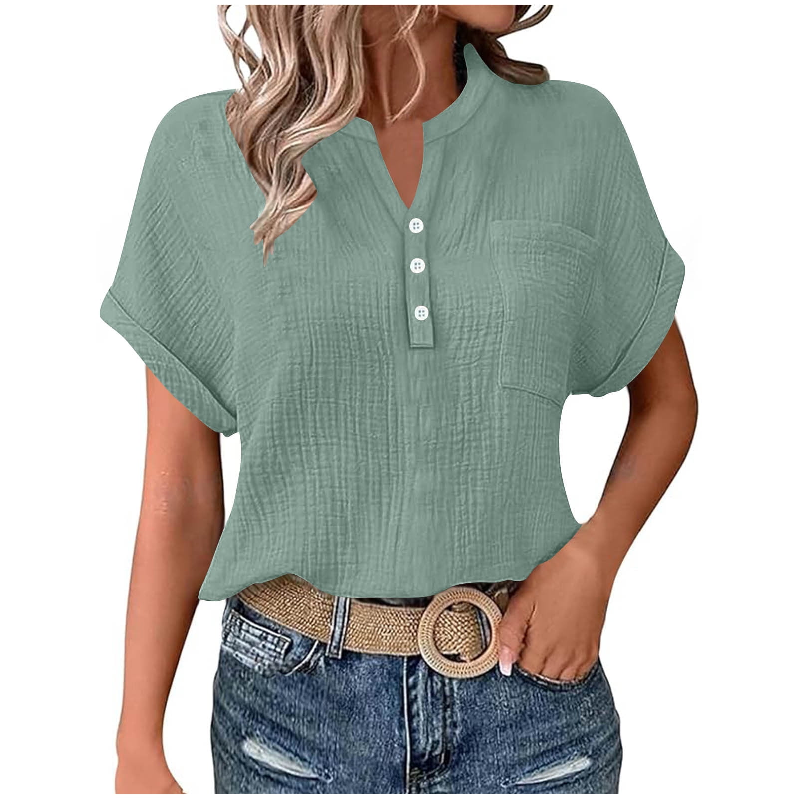 Craaazy Women's Casual Breathable Cotton Linen Solid Color Short Sleeve ...