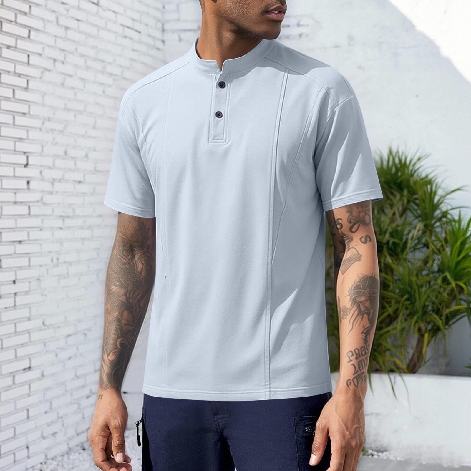 BangWanChi Mens Button Placket Henley T-Shirts Short Sleeve Color ...