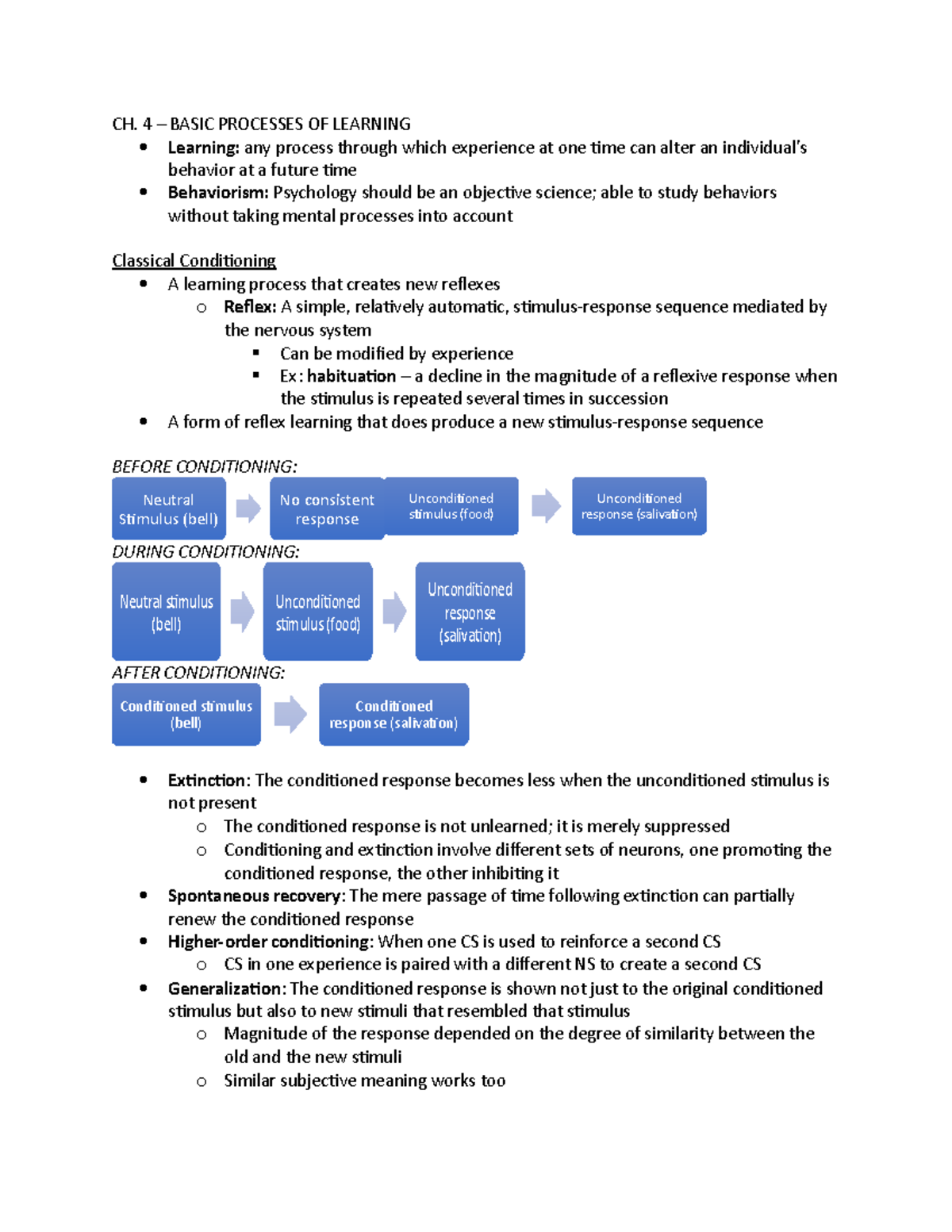 CH. 4 Textbook notes - CH. 4 – BASIC PROCESSES OF LEARNING Learning ...