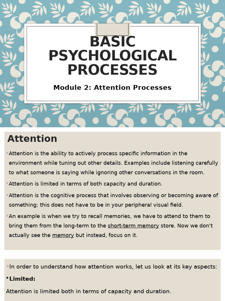 Basic psychological processes - Unit 1 Introduction to Psychology ...