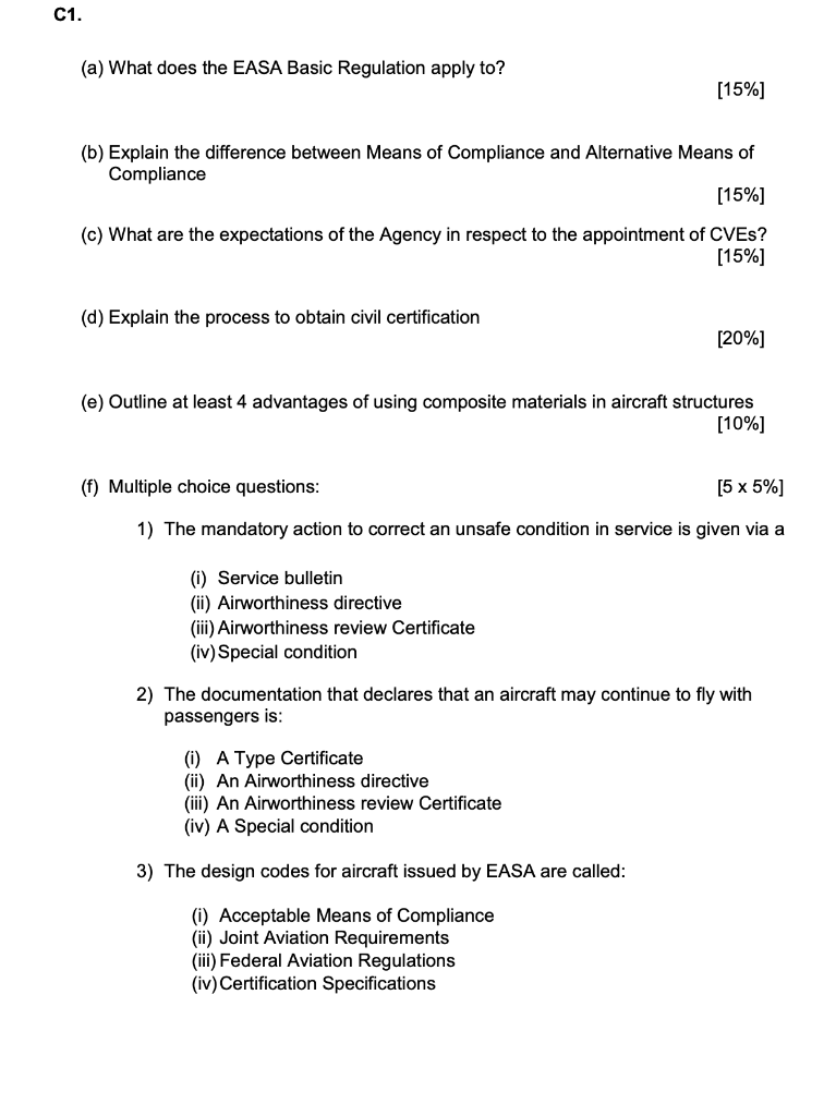 Solved C1. (a) What does the EASA Basic Regulation apply to? | Chegg.com