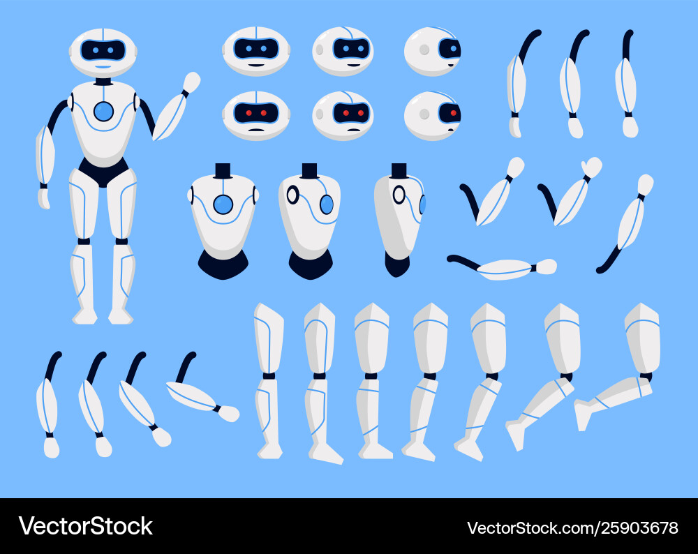 Robot Vector. Animation Creation Set. Modern Robot Helper. Head, Face ...