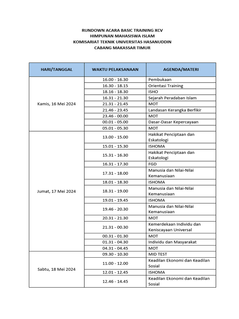 Rundown_Basic_Training_LK1_2024 Belum Fix | PDF