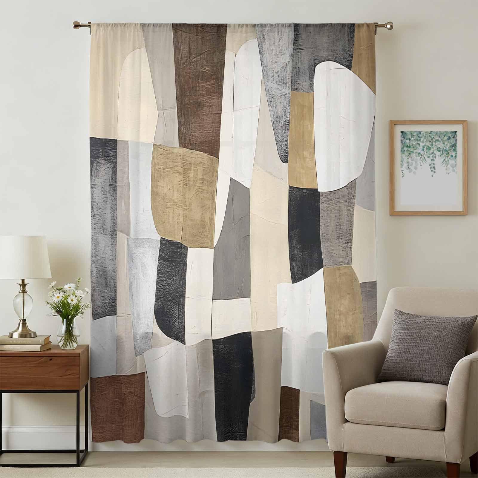 Abstract Geometric Sheer Curtains 54 Inches Long, Oil Painting Simple ...