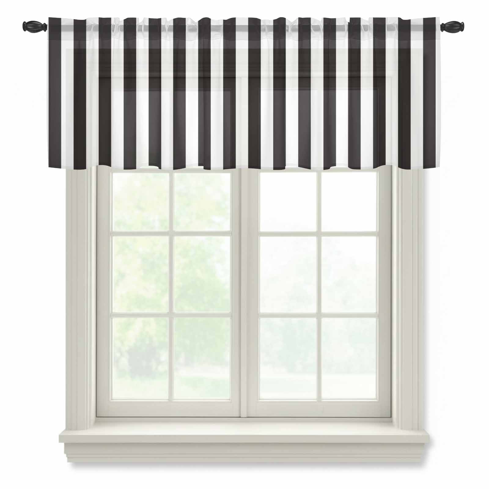 BLack White Stripes Simple Semi Sheer Valance Curtains Geometric Voile ...