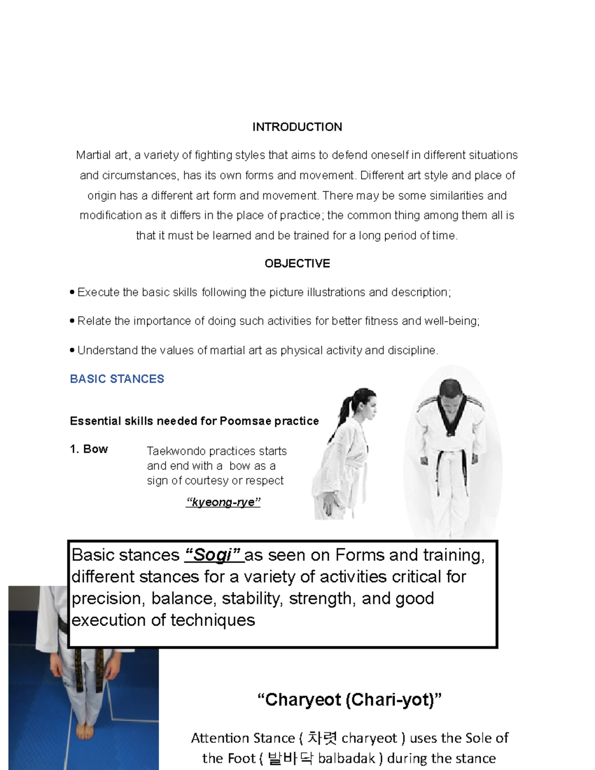 Taekwondo PE Basics: Stances, Punches, and Kicks Explained - Studocu