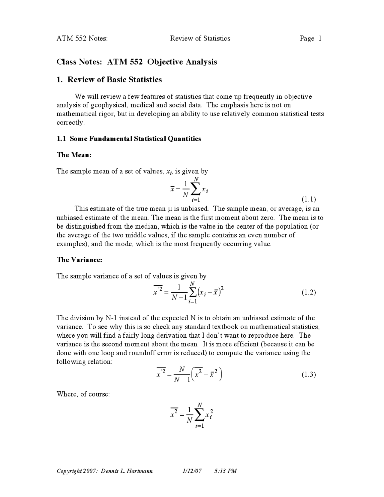 Review of Basic Statistics - Lecture Notes | OCEAN 569 | Study notes ...