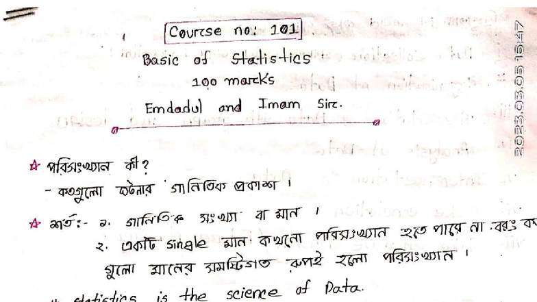 CS 101 Basic Statistics Lecture Notes by Emdadul & Imam - Studocu