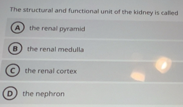 Solved: The structural and functional unit of the kidney is called A ...