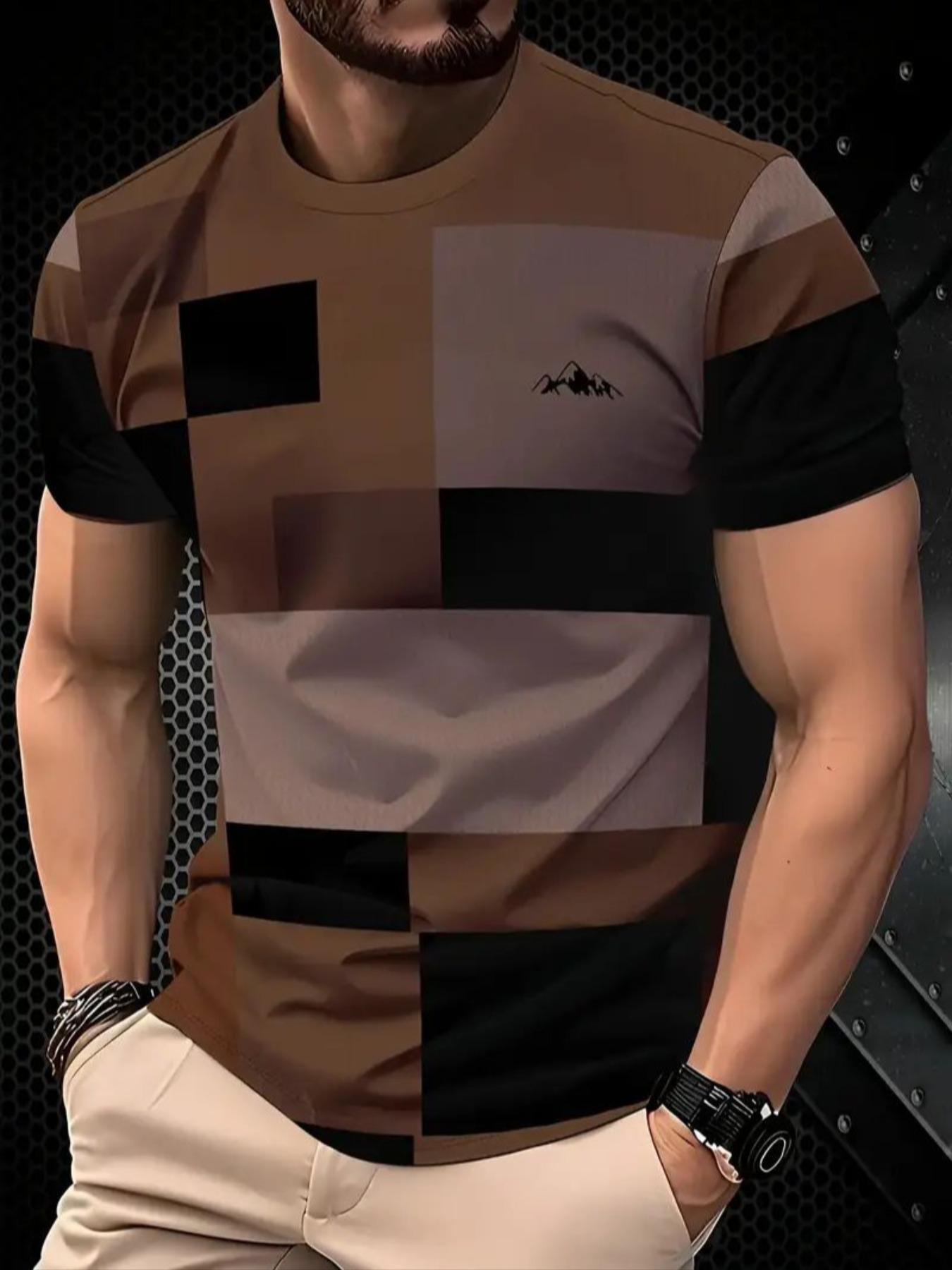 Men's Coffee Plaid T-Shirt, Short Sleeve Geometric, //cream/, Casual ...