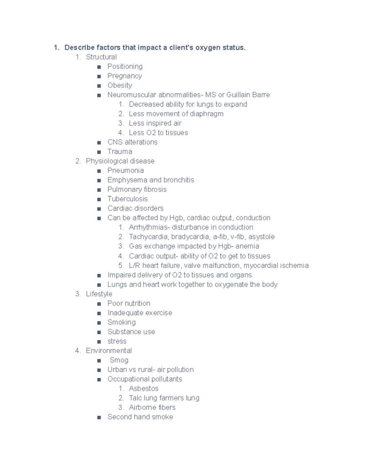 NFDN 1002 - Unit 6: Factors Impacting Oxygenation and Nursing Care ...