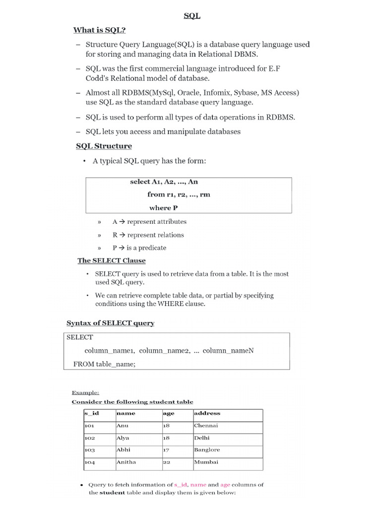 STRUCTURED QUERY LANGUAGE (SQL). SQL is one of the most important tool ...