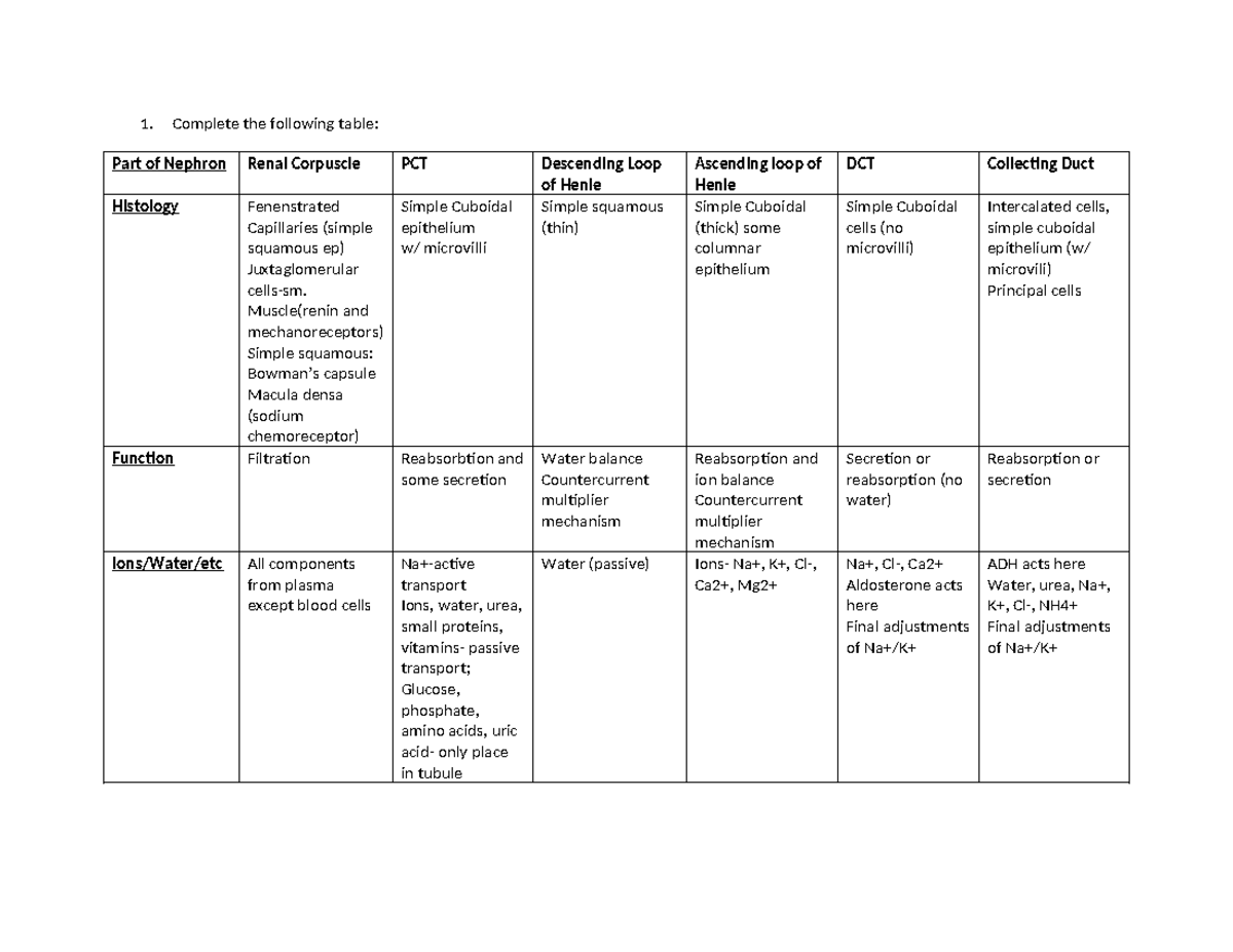 Urinalysis Function WS Answers: Nephron Structure & Histology - Studocu