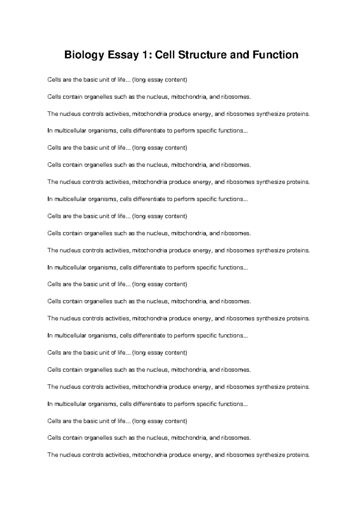 Biology Essay 1: Exploring Cell Structure & Function - Studocu