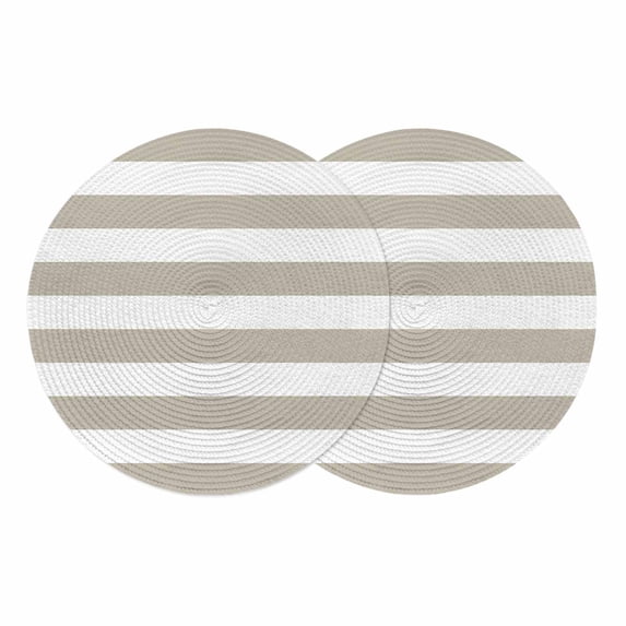 Beige Stripes Round 13 Inch Placemats Set of 2, Simple Beige White ...