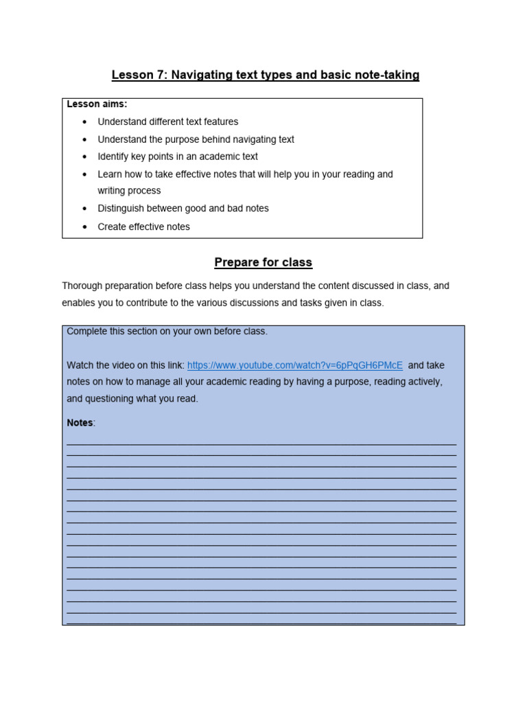 Lesson 7 - Navigating Text Types and Basic Note-Taking | PDF | Reading ...
