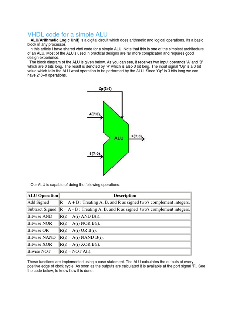 VHDL Code For A Simple ALU | PDF | Vhdl | Computer Architecture