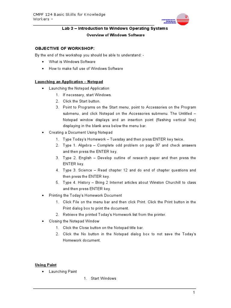 Lab 3 - Introduction To Windows Operating Systems: Overview of Windows ...
