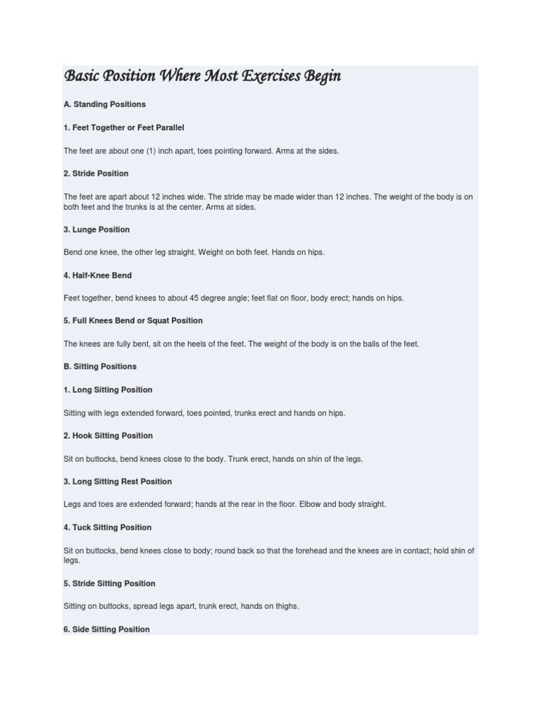 Basic Positions and Exercises - BASIC POSITIONS WHERE MOST EXERCISES ...