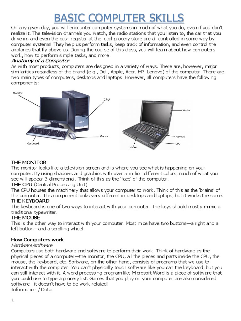 01 Basic Computer Skills | PDF | Personal Computers | Operating System