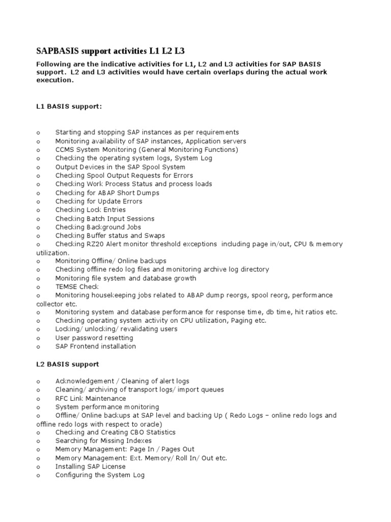 SAP BASIS Support Activities Overview | PDF | Backup | Online And Offline