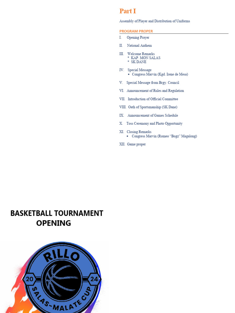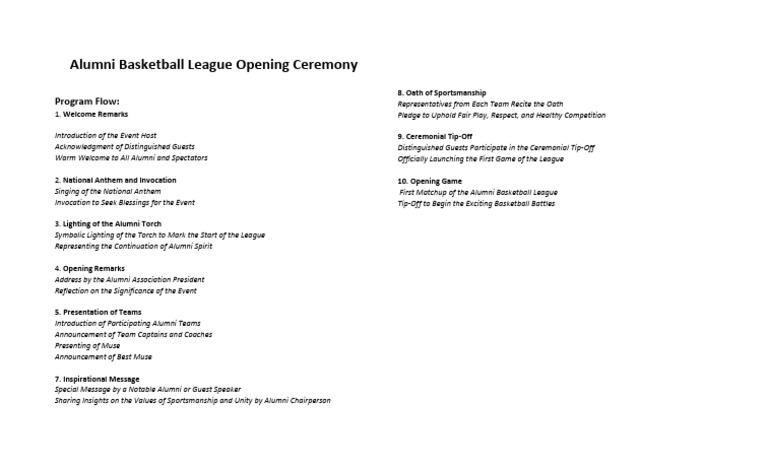 Basketball League Opening Ceremony Program | PDF