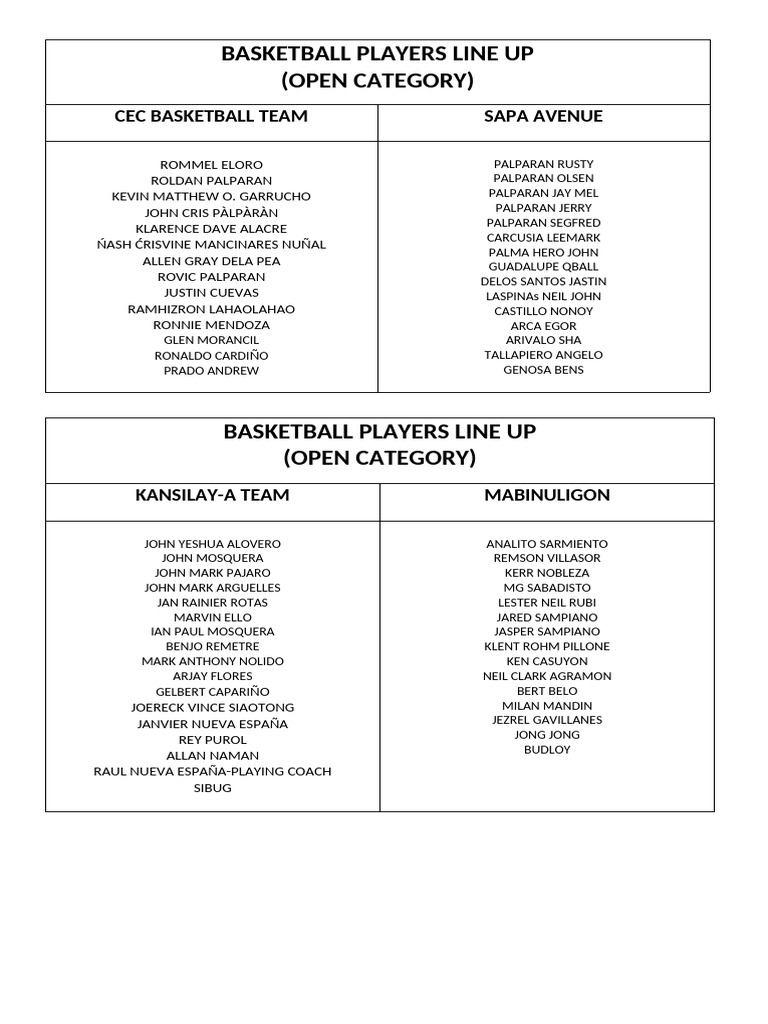 Basketball Team - Open Category | PDF