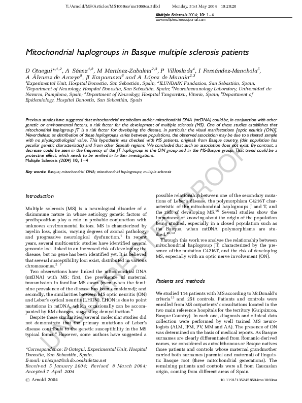 (PDF) Mitochondrial haplogroups in Basque multiple sclerosis patients