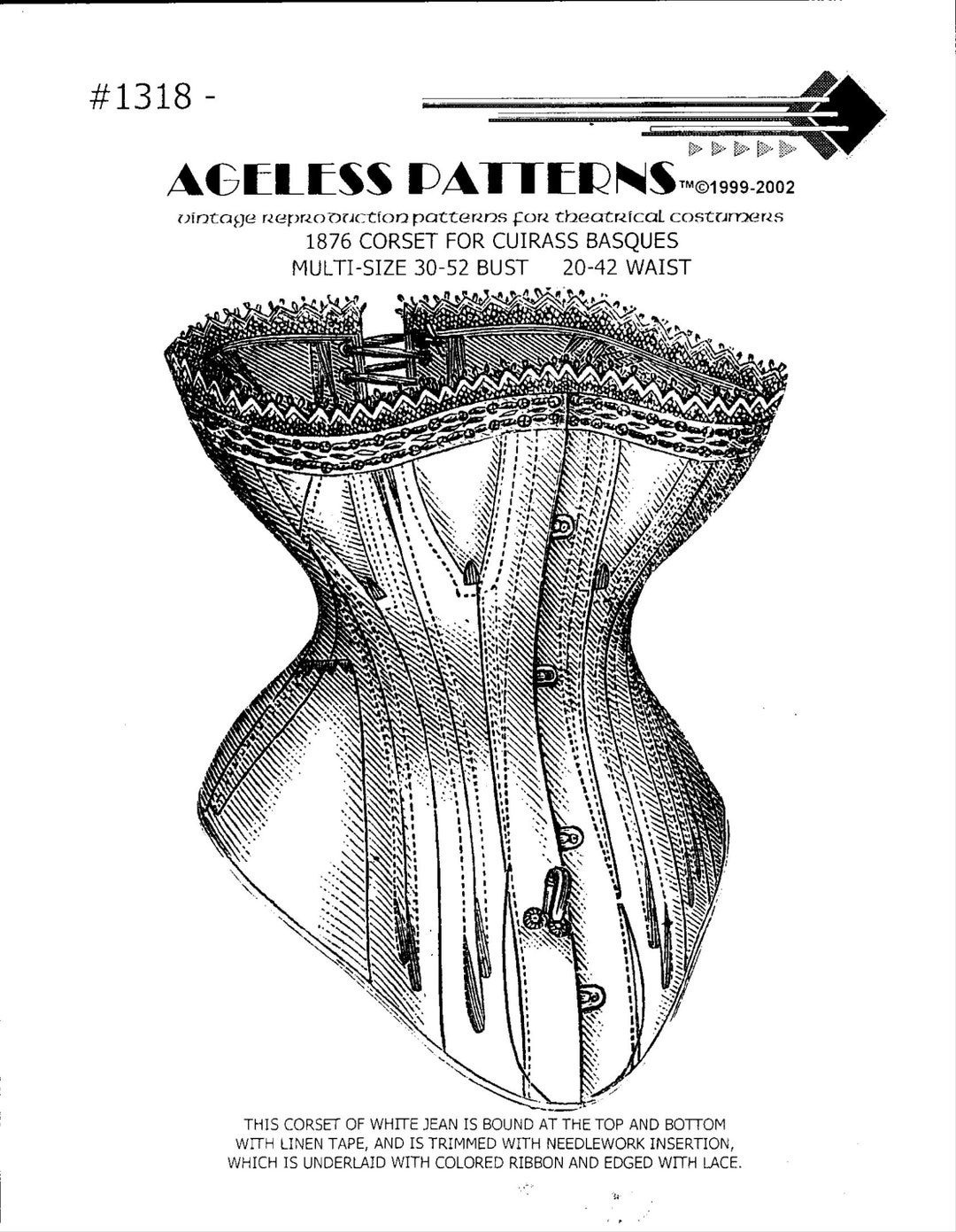 AGELESS PATTERNS 1876 Corset for Cuirass Basques, Bust 30-52, Waist 20 ...