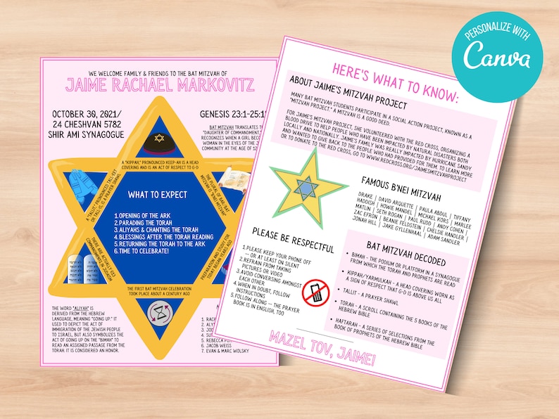 Editable Bat Mitzvah Program Template (digital Download) - Etsy