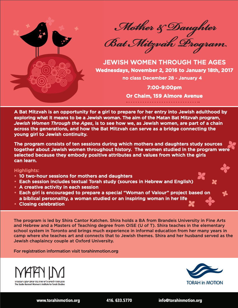 Mother Daughter Bat Mitzvah Program 2016-2017 | Torah In Motion
