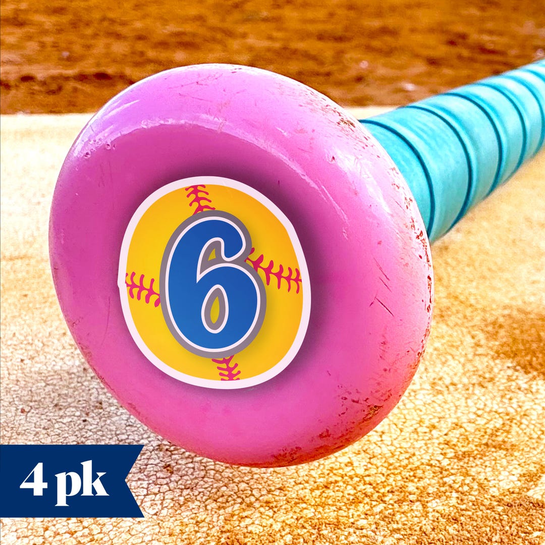 Custom Softball Bat Number Stickers -- 1 Inch, Personalized 4-pack ...
