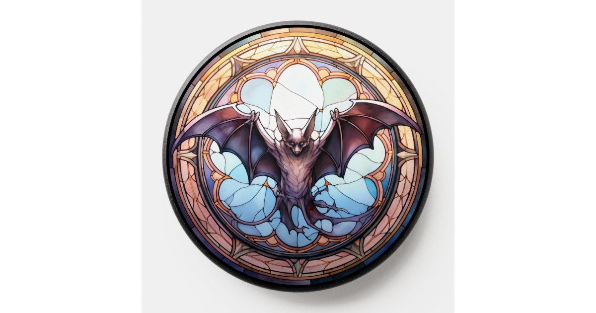 Sweet Stained Glass Spooky Flying Bat PopSocket | Zazzle