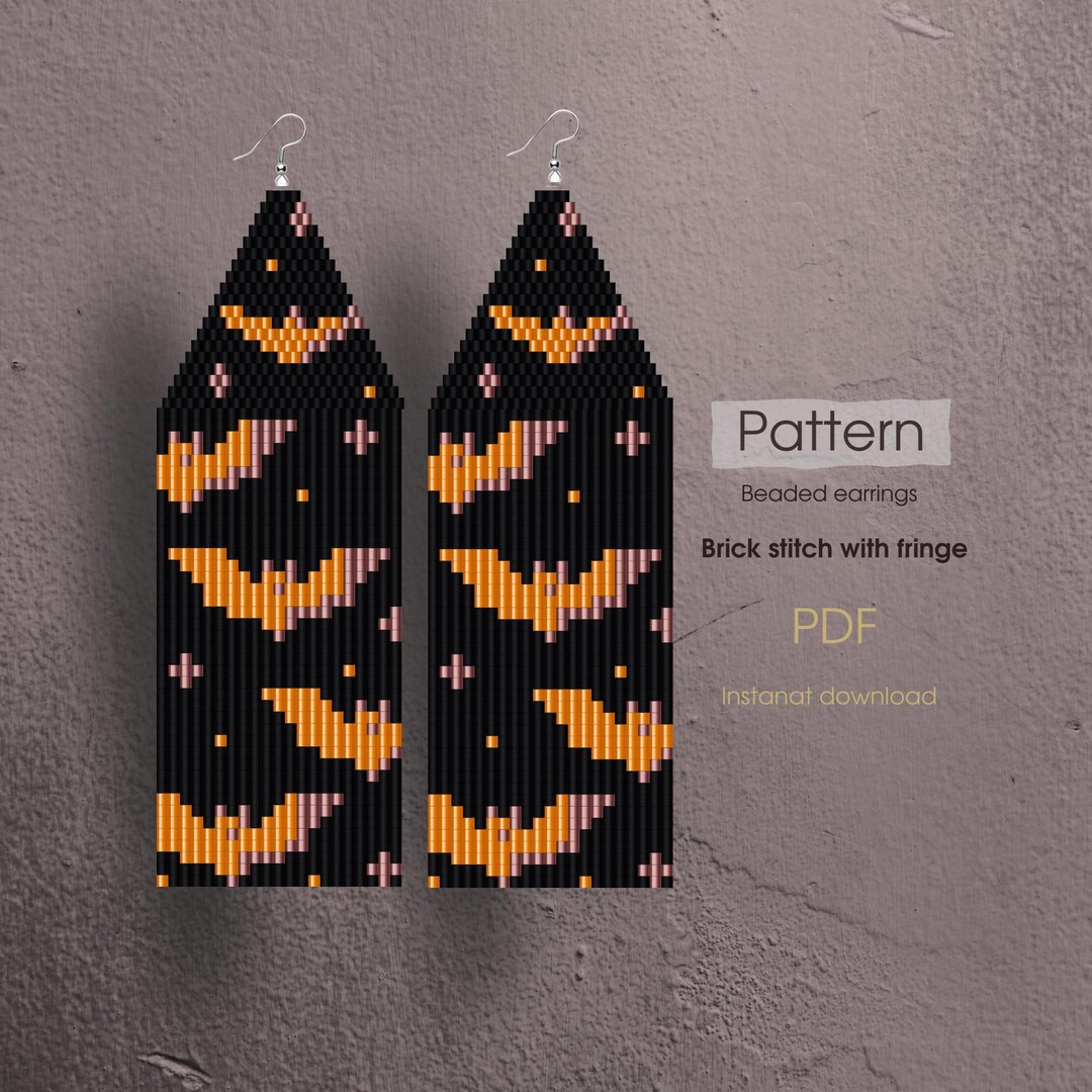 Bat Brick Stitch Pattern for Fringe Beaded Earrings, Halloween Pattern ...